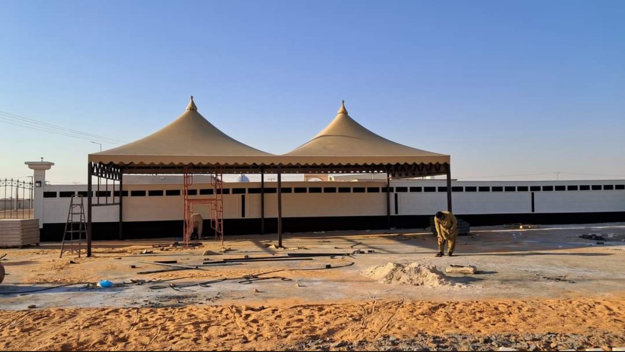نراعي في التنفيذ قوة القواعد الحديدية، سماكة الأعمدة، وثبات القماش لضمان عمر افتراضي طويل يتحمل حرارة وأمطار الدرب.